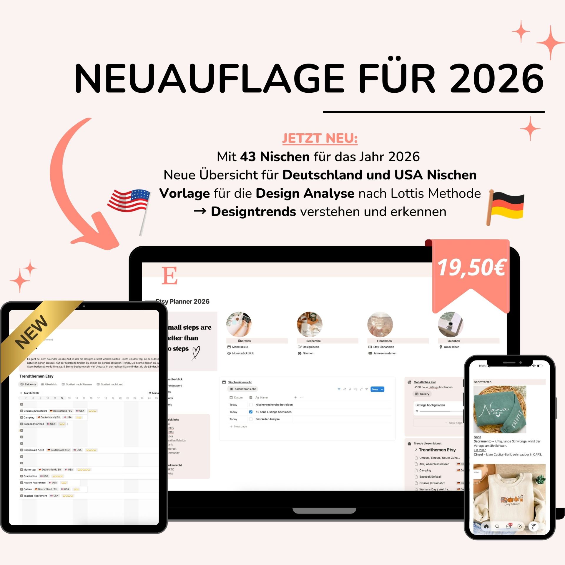Du verlierst manchmal den Überblick über deinen Etsy-Shop? Dann ist dieser Planer genau das Richtige für dich! Er verleiht dir Struktur, hilft dir bei Nischenanalysen und erinnert dich an die wichtigsten Trends.
